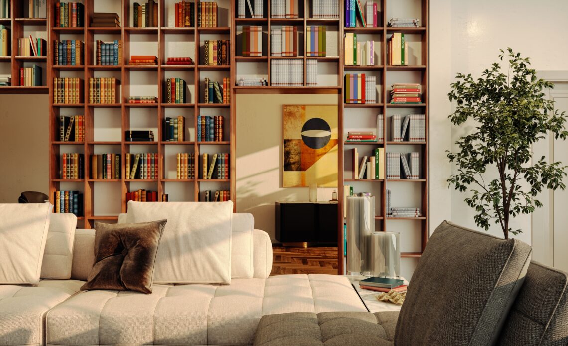 Escolher onde ela vai nascer é o primeiro passo para que esse ambiente cumpra sua promessa. Não é obrigatório reservar um cômodo inteiro, porque a biblioteca pode emergir em um corredor, ocupar uma parede do quarto, se integrar à sala ou surgir debaixo da escada. O essencial é que o espaço seja arejado, com luz adequada e distante da umidade. A iluminação natural sempre trabalha a favor, enquanto o sol direto exige cautela, já que pode danificar capas e desbotar lombadas.