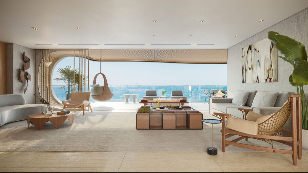 Localizado na Barra da Tijuca, de frente para a Praia da Barra, posto 6, este empreendimento inaugura no Rio de Janeiro a assinatura da Pininfarina, estúdio italiano reconhecido internacionalmente por projetos que atravessam o tempo com identidade e precisão. Com arquitetura e interiores das áreas comuns desenvolvidos pela Pininfarina, interiores das áreas privativas por Pedro Coimbra e paisagismo assinado pela Landscape, o projeto apresenta uma linguagem escultural que dialoga com o encontro do oceano e a Pedra da Gávea, integrando-se ao entorno com fluidez e proporção. A fachada revela movimento por meio de curvas orgânicas e volumetria marcante, com acabamentos minuciosos que reforçam sua presença arquitetônica. Com 14 andares e apenas 20 unidades, as residências variam de 452 m² a 1.189 m², todas voltadas para o mar, com plantas amplas, de quatro a oito vagas de garagem e boxes privativos. O lobby conta com mobiliário exclusivo com design da Pininfarina, consolidando a proposta de um endereço que posiciona o Rio de Janeiro entre as metrópoles mais desejadas do cenário internacional, em uma expressão arquitetônica atemporal e singular