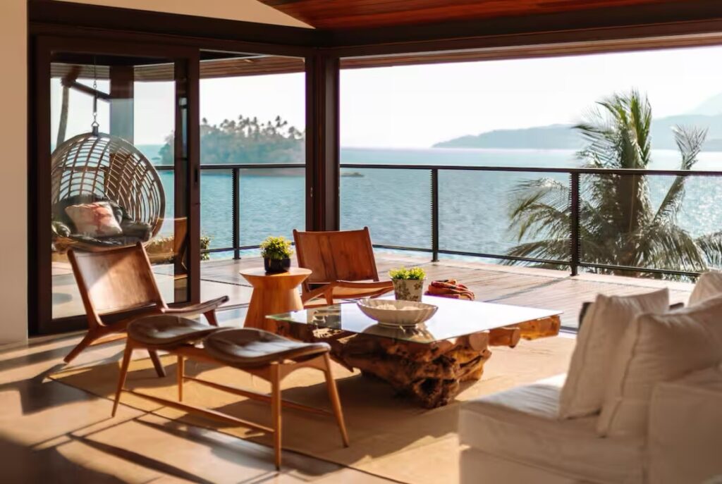 Localizada na região central de Ilhabela, esta residência costeira oferece vista aberta para a Ilha das Cabras e integração direta com o mar. O projeto combina elementos naturais e ambientes voltados para o lazer, com áreas sociais que favorecem a convivência em meio à paisagem. A casa apresenta estrutura funcional para uso como residência de veraneio, com ambientes internos bem distribuídos e acesso facilitado à costa. A posição privilegiada preserva a privacidade e proporciona conexão com a natureza ao redor.