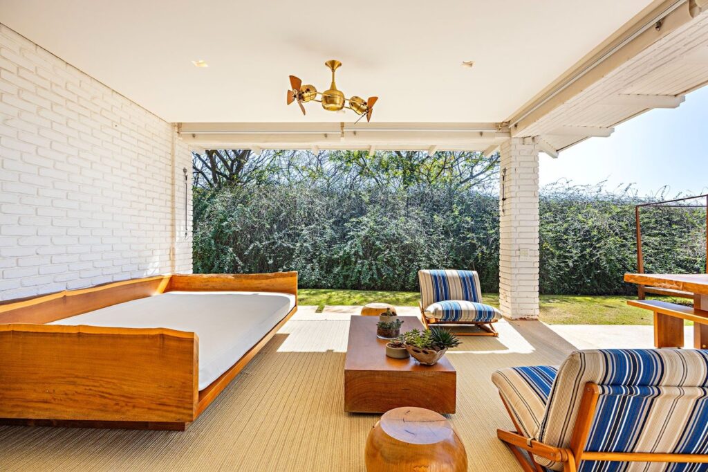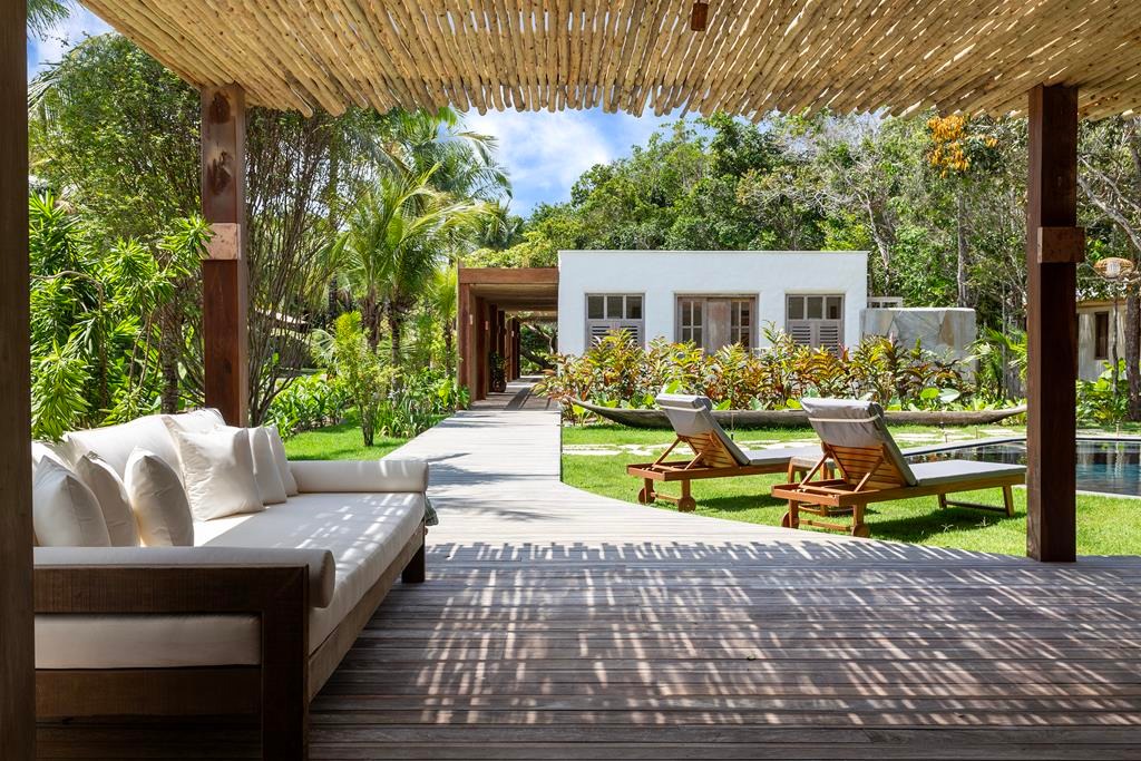 Totalmente integrada à natureza, esta residência está situada no Condomínio Pedro Grande, a apenas dois quilômetros e meio do Quadrado e a quinhentos metros da praia do Rio da Barra. O projeto arquitetônico é assinado por Julia Bittencourt, com decoração elaborada pela proprietária e paisagismo da Licuri. A inspiração vem da cultura local, da paisagem natural e das experiências da proprietária em viagens pelo mundo. A casa dispõe de oito suítes que acomodam confortavelmente até dezesseis hóspedes, sendo uma delas inteiramente construída em madeira — um dos destaques do projeto. Com duas entradas independentes e duas piscinas, a propriedade pode ser utilizada ou alugada em módulos distintos, oferecendo flexibilidade e exclusividade em um dos endereços mais desejados de Trancoso.