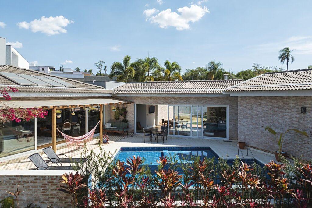 Assinada pelo escritório Lucas Padovani Arquitetura, esta residência térrea une conforto e integração em um projeto contemporâneo. O living abriga sala de estar com lareira e jantar em um único ambiente, conectados à área gourmet totalmente equipada e ao lounge com varanda coberta. A área íntima conta com quatro suítes, além de uma quinta suíte reversível que atualmente funciona como home theater com banheiro próprio. O paisagismo, desenvolvido por Alexandre Furcolin, valoriza o terreno e integra horta orgânica, gazebo com lareira externa e espaços de convivência ao ar livre. A piscina, de estilo contemporâneo, possui prainha, spa e aquecimento solar e elétrico. A propriedade dispõe ainda de dependência para funcionários, garagem coberta para três carros e espaço adicional para mais quatro veículos, incluindo vaga para golf cart.