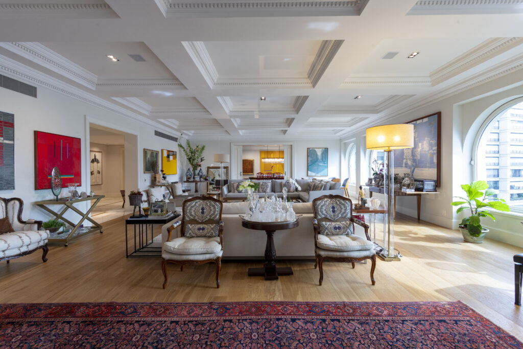 Localizado em andar alto do icônico Edifício Golden Gate, projeto de Adolpho Lindenberg no Jardim Europa, este apartamento de 736 m² combina arquitetura clássica, interiores assinados e uma vista panorâmica que domina o horizonte da cidade.