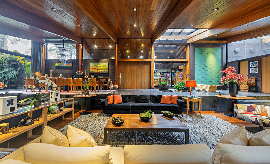 Um projeto de 1970 totalmente renovado, que combina madeira nobre, terreno amplo, infraestrutura de ponta e um conjunto de lazer marcante